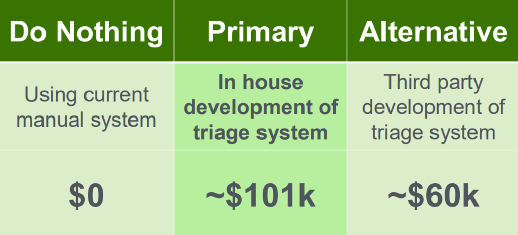 Now coming back to our decision between hiring external developers or using internal staff. At first, I wanted the external option because it was faster. But looking back, I realize that there was alot more risk if we went that route. If the RCC spent $40,000 upfront and the software broke two years later, they wouldn’t have the budget to hire the consultants back to fix it. Furthermore for any maintainence or upgrades we would have to rehire external contractors which would be costly. By choosing the slower, in-house option, we ensured the RCC could maintain the system themselves. Looking past just the cost, I learned that the best solution isn’t always the fastest one. It is the one the client can actually afford to keep running.